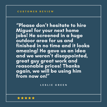 Hear firsthand how we transform outdoor spaces, tackle challenges with professionalism and expertise, and discover the excellence behind our services through the words of our valued clients. Read on to see why homeowners trust us for their screen enclosure needs.